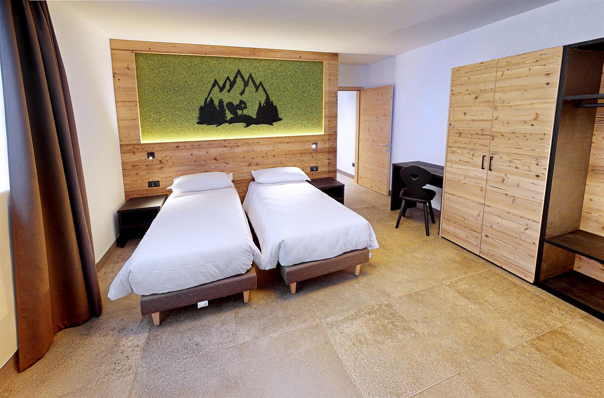 Livingzone: Alpinenrichtung mit bequeme Sofa, Tisch mit Bank, Smartfernseher, Balkonen Sud-West Richtung Brentadolomiten. Extrasofa ist mit Daube und Matratze