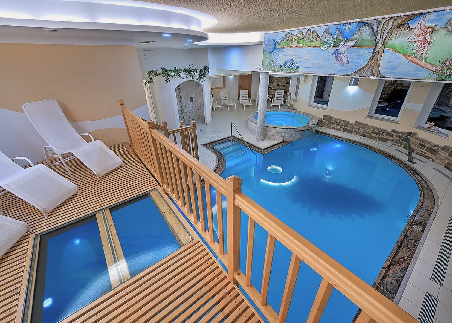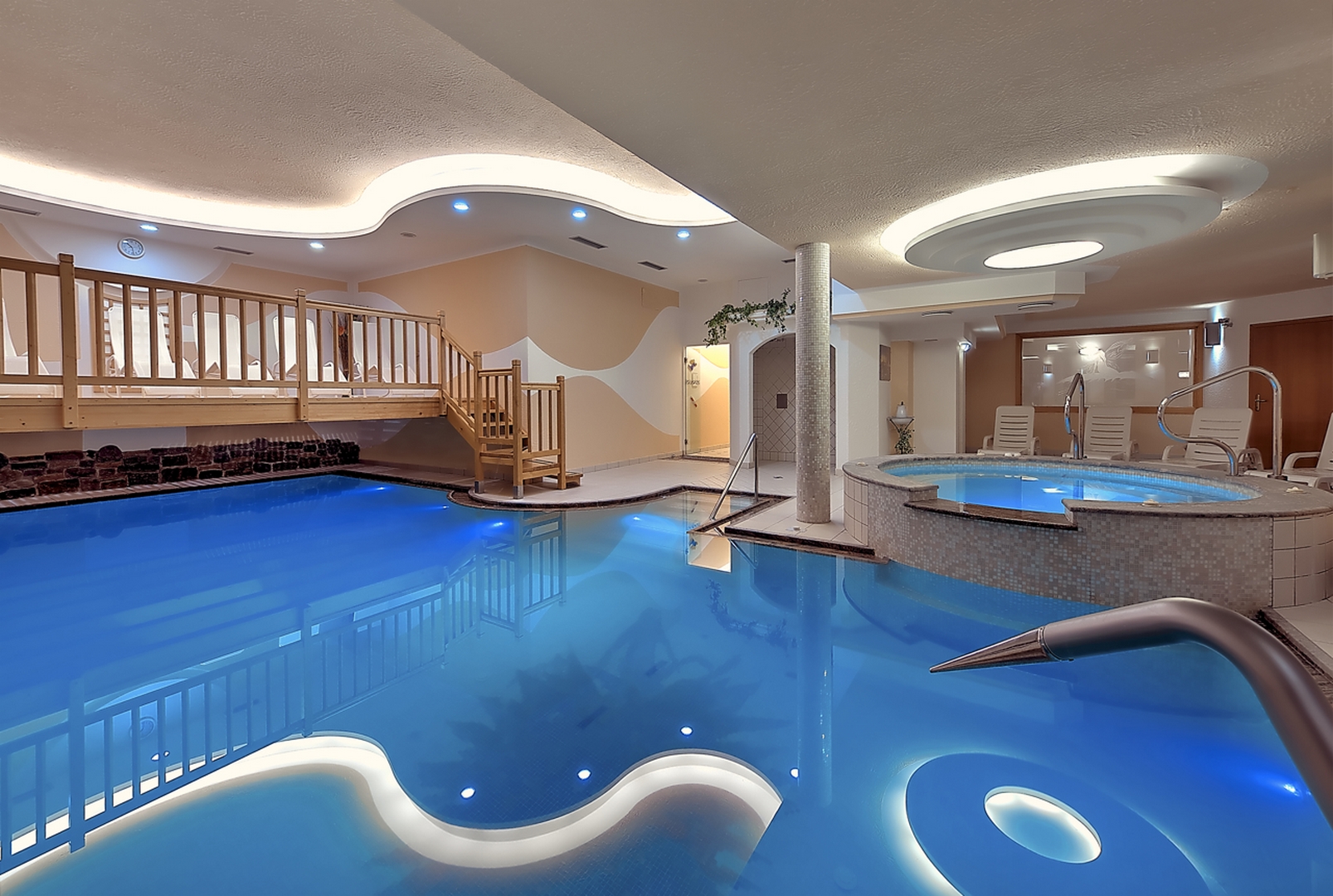 Meravigliosaa la piscina panoramica coperta, fantastico divertimento in acqua a 30 gradi con bellissima vista sulle cime del Brenta. Lasciatevi andare al piacere dello spruzzo della coda di balena, godetevi le meravigliose sensazioni dei massaggi dell'effervescenza e della zona del nuoto contro corrente. Provate il beneficio e le virtù dell'acqua nella vasca idromassaggio che non poteva mancare nella nostra oasi benessere e delle musiche della zona relax nel soppalco, posizionato direttamente sopra la piscina, dove potrete fare il punto della situazione e concordare le escursioni del giorno successivo in un'atmosfera distesa e piacevole. Provate il beneficio e le virtù dell'acqua nella vasca idromassaggio CON ACQUA A TEMPERATURA SUPERIORE (33-34 gradi) che non poteva mancare nella nostra oasi benessere